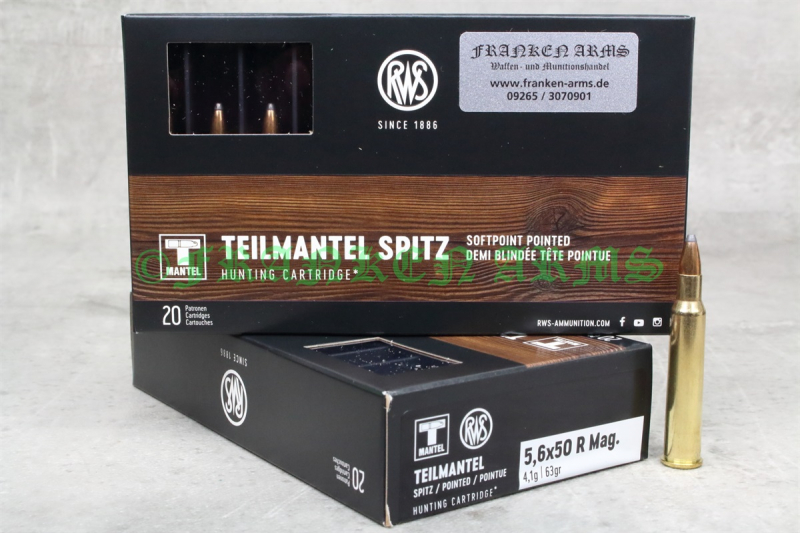 RWS Teilmantel 5,6x50R Magnum 63gr. 4,1g 20 Stück