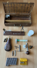 1 Holzbox zum aufnehmen der Teile, 1. Ladebrett zum aufnehmen der Pulverröhrchen (mit 15 Röhrchen) und der gefetteten MaxiBall Geschosse, 1 Fettvorrichtung zum fetten der Geschosse, 1 Pulverflasche (leer) mit 4 verschiedenen Füllstutzen,1 Pistonschlüssel 5mm passend für die 4 Pistons (für Mavi oder Investarms Hawken), 1 Fülltrichter, 2 Kugelstarter, 1 Transportbox füe die Gefetteten Maxi-Ball Geschosse, 2 Standvisiere für die Mavi-oder Thompson Center Hawken, 1 Dose mit grünen Fett ca. 1/2 voll, 1 Ladezange, 70 Maxi Ball Geschosse Kal. 45 (.454)Gewicht ca. 243 Grain aus reinem Weichblei.