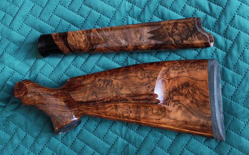 Blaser R93,Schaftmass 370 mm (es ist nach Ihrem Wünsch eine Korrektur der Länge moeglich).Handgeschnittene Fischaut 1,25 mm. Ebenholzabschluß Der Vorderschaft.