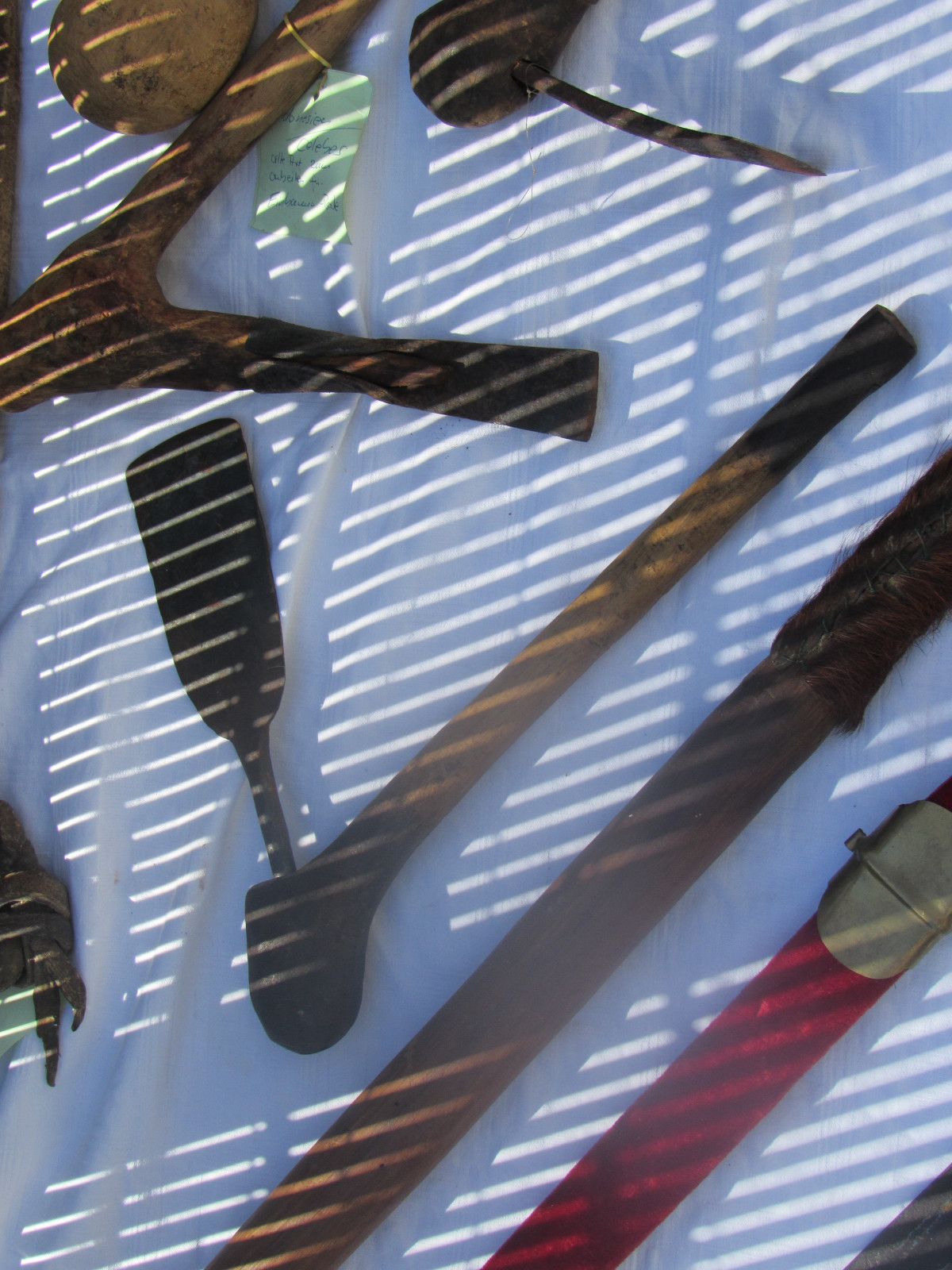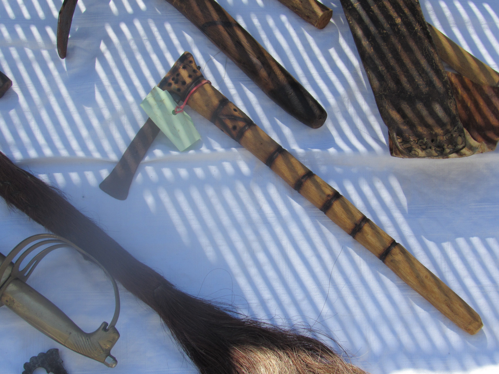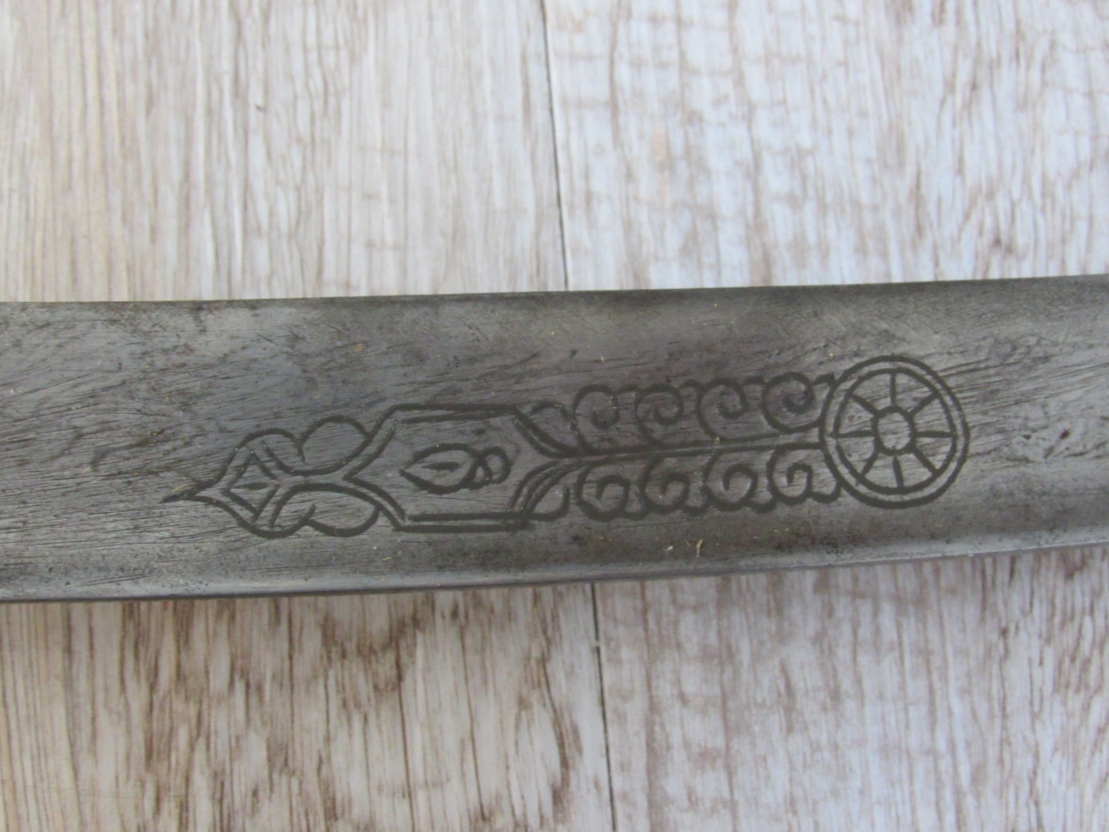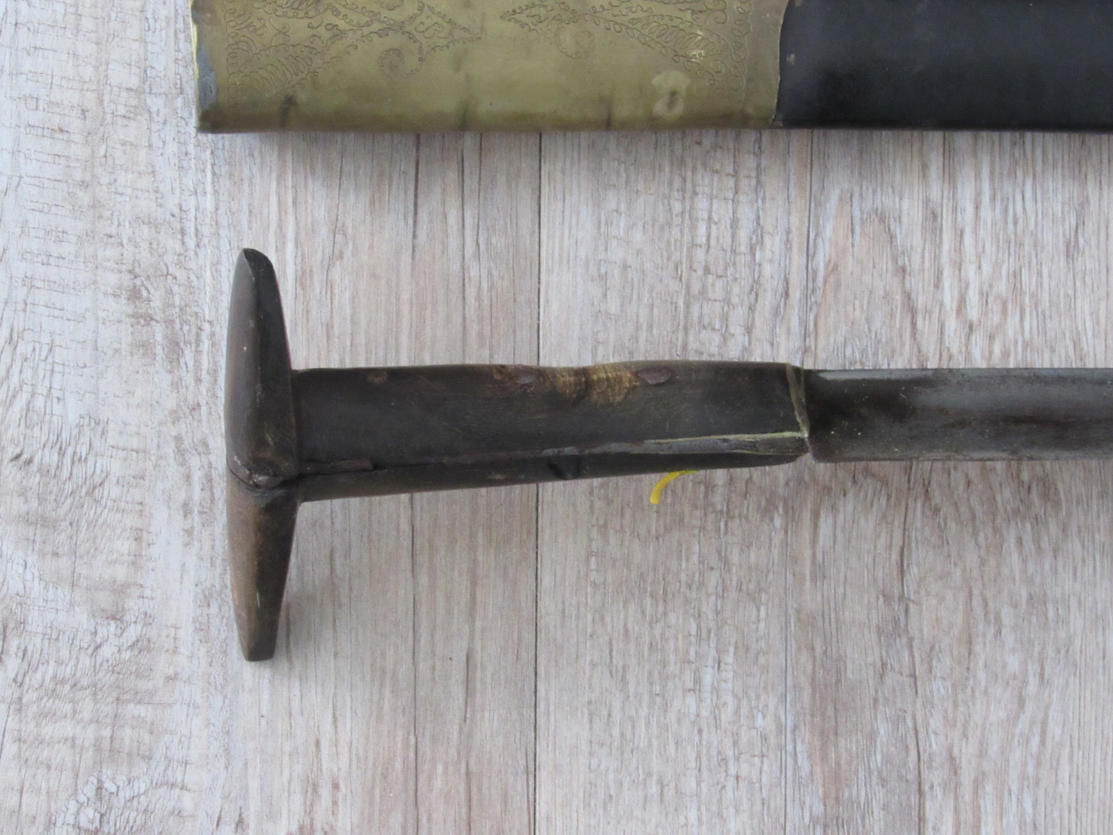 Zustand: Langer Schwert am Knauf beschädigt. Teils mit Belag und Rost. Klingen teils Beschliffen sowie weitere Alters und Gebrauchsspuren.