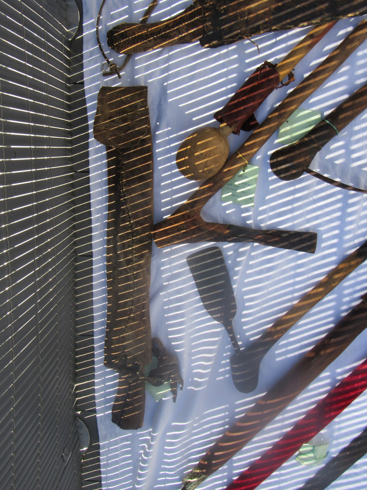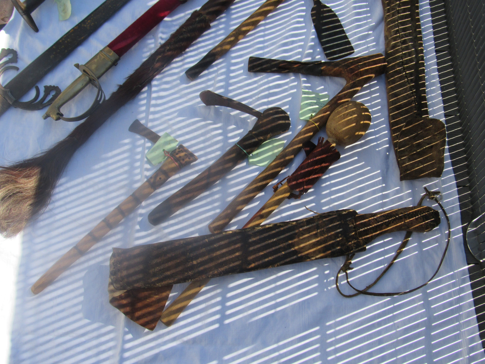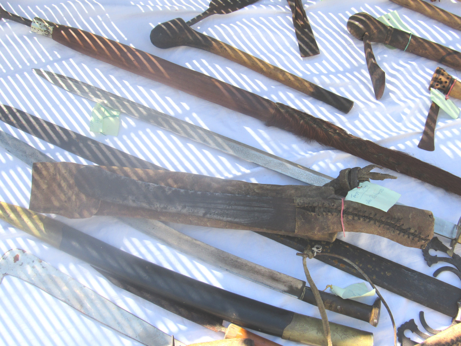 Teilweise handelt es sich um Dekowaffen, aber auch ältere Waffen. Einzelne Zettel liegen mit der Bezeichnung der Waffen bei, nicht für alle.