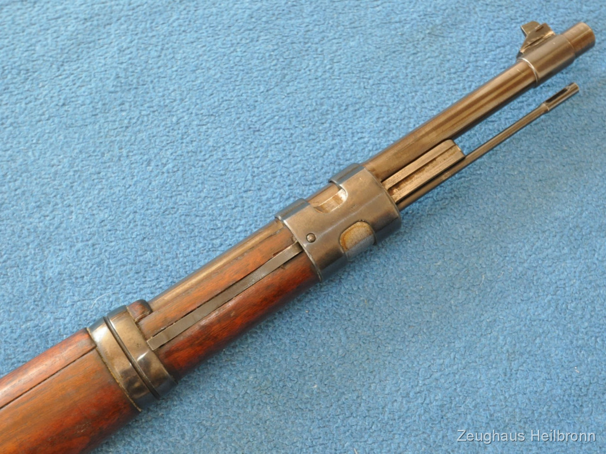 Waffe in einem sehr schönen Zustand, siehe Bilder, Lauf blank, volle mechanische Funktion. Kammerstengel leicht nach hinten gebogen. Mit Schiene für ZF41.
