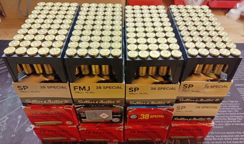 600 Stück .38 Spezial Hülsen von Geco und Sellier & Bellot in Originalverpackung wie abgebildet.
