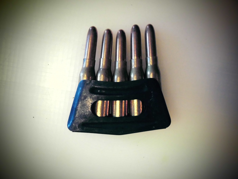 Sammlungsauflösung.MoinSie bieten auf einen Laderahmen mit 6Deko Patr. mit Klapperkugel im Kal .8x50 R Steyer.Privatverkauf,keine Garantie,keine Rücknahme.