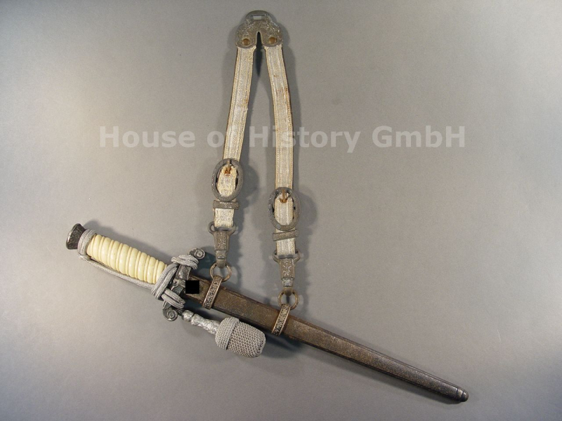 Heeres Offiziersdolch mit Luxus-Gehänge und Portepee, Hersteller: Alcoso, weißer Griff (der Griff ist etwas beweglich), typischer Hoheitsadler von Alcoso, schöner getragener Zustand