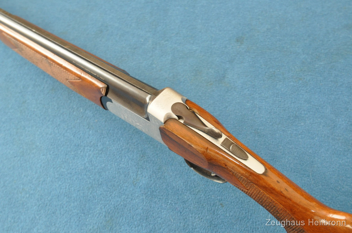 Waffe in einem schönen Zustand mit leichten Gebrauchsspuren am Schaftholz, siehe Bilder, System dicht, Läufe blank, Ejector.