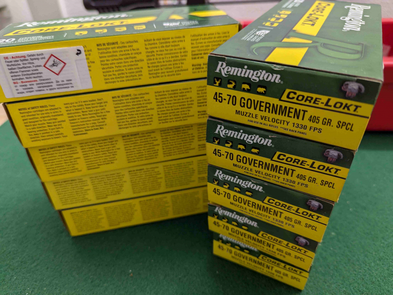 Hülsen 45-70 Remington, nur einmal geschossen, danach entzündert und kalibriert. 10 Schachteln zu je 20 Stück, somit 200 in Summe.