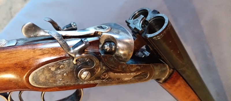 Hähne nach innen gestellt, diese lassen sich bei offener Flinte Spannen
