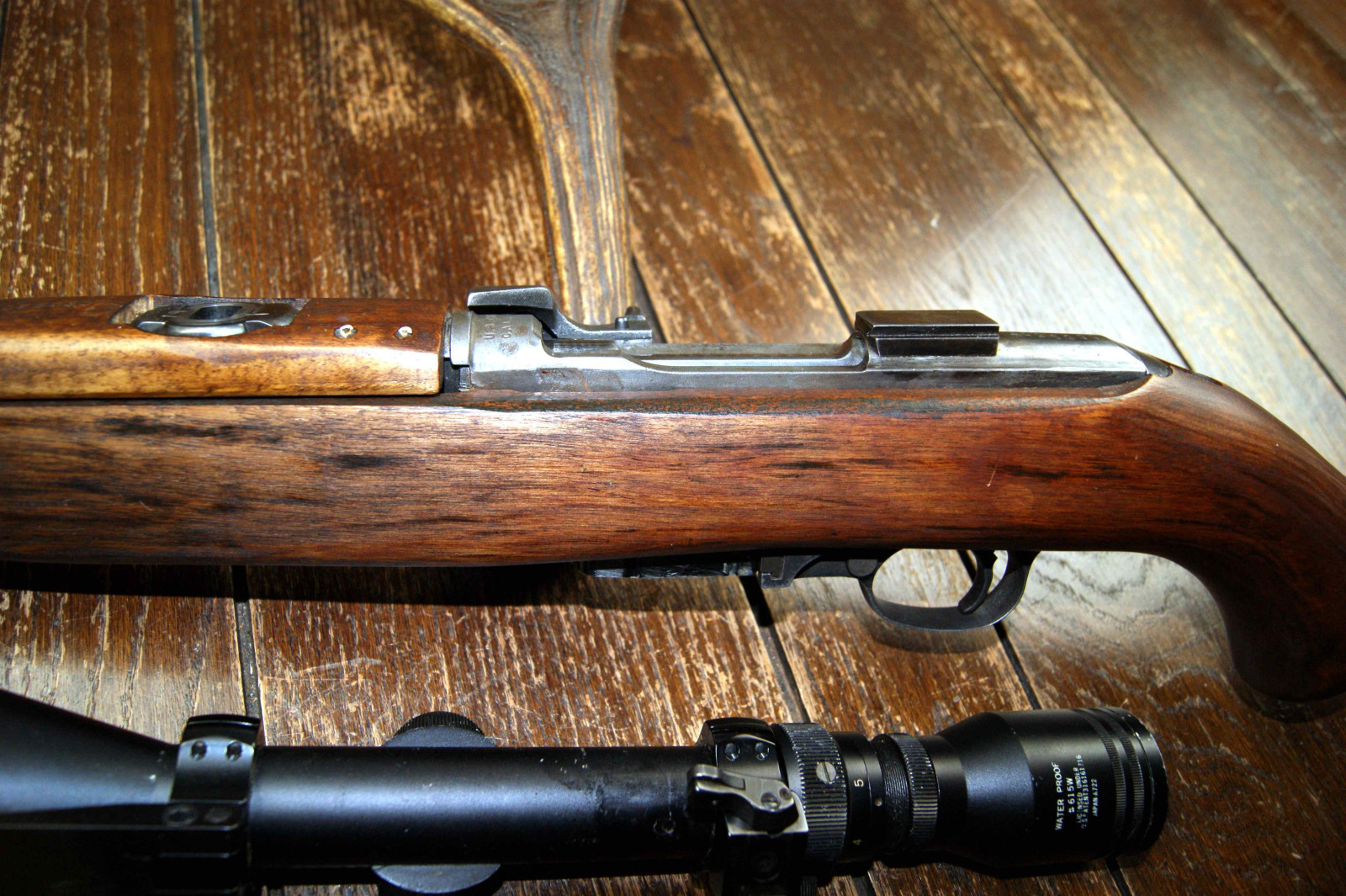 Zum Verkauf kommt ein .30M1 Carbine der jagdlich "hergerichtet" wurde, die Waffe ist im Kaliber .30M1, es wurde eine andere Kimme angebracht und eine Schwenkmontage mit ZF Tasco, außer dem wurde ein Gewinde an der Mündung geschnitten, Die Waffe ist ohne Neubeschuss und wird nur an Händler, Sammler oder zum Export verkauft.