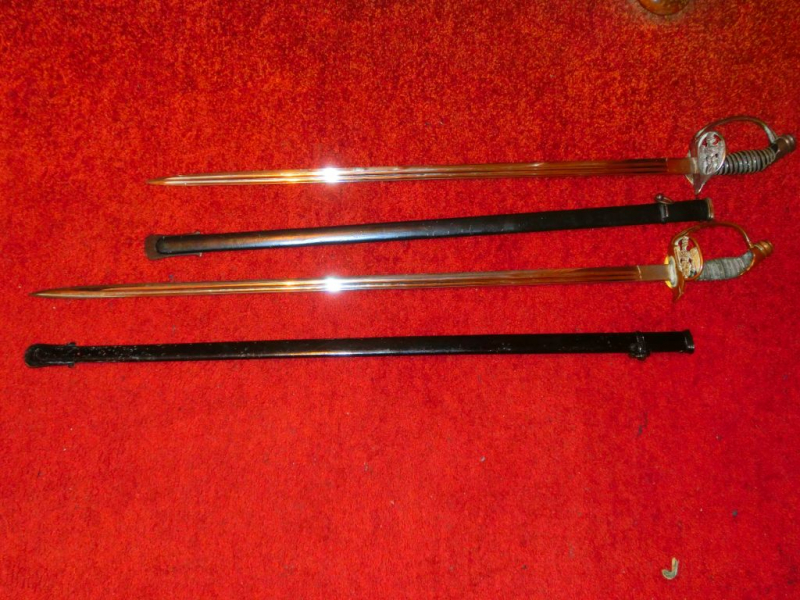 Degen ca 80 und )90 cm lang Klingenbreite ca 22 mm Beide Scheiden zugehörig