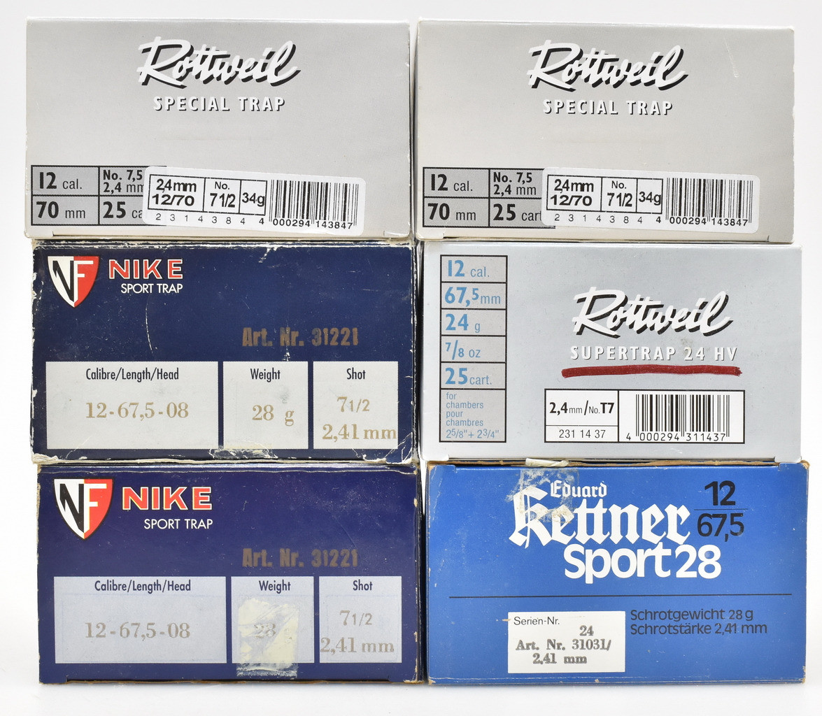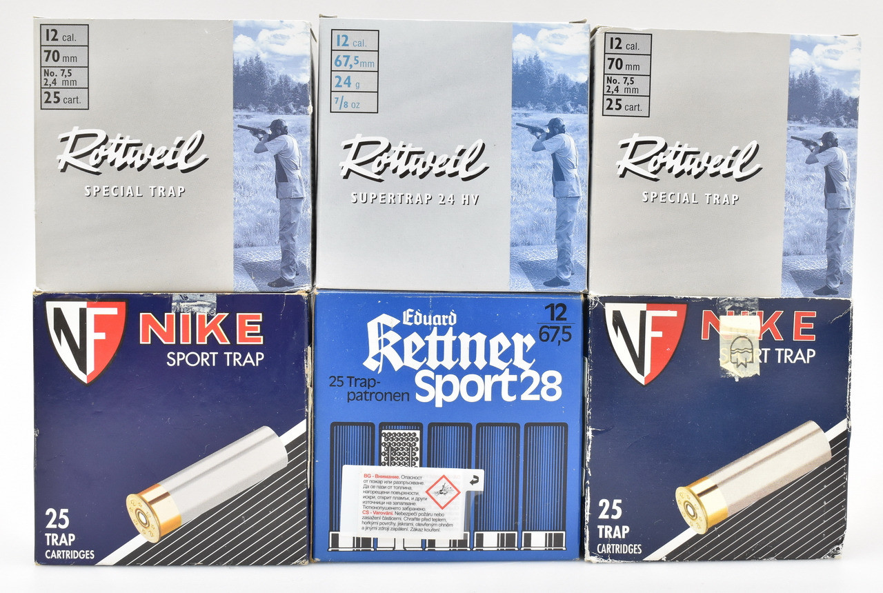 50 St. Rottweil Special Trap 2,4mm 34g. 50 St. Nike Trap 2,41mm 28g. 25 St. Rottweil Supertrap 2,4mm 24g. 25 St. Kettner Sport 2,41mm 24g.