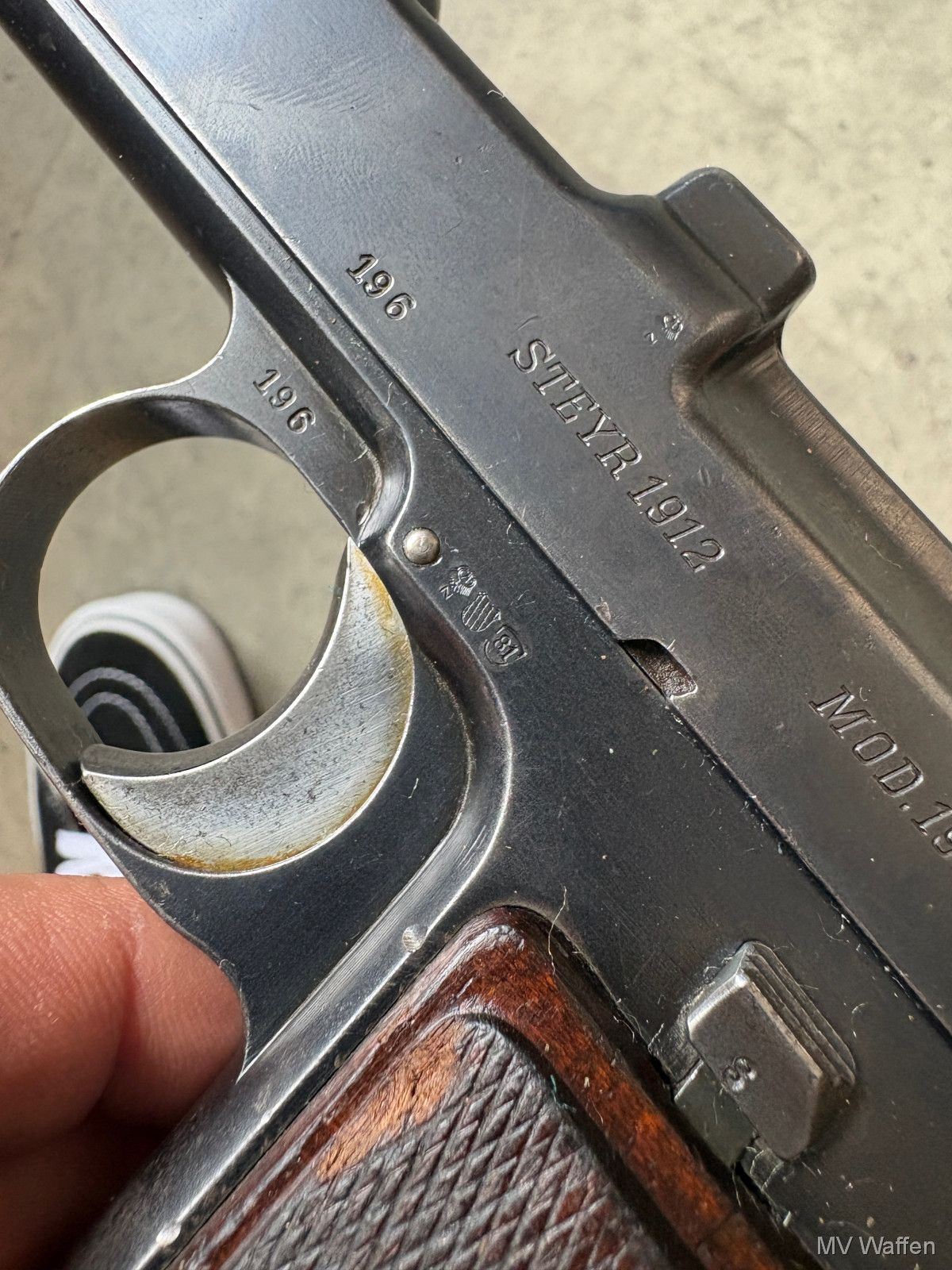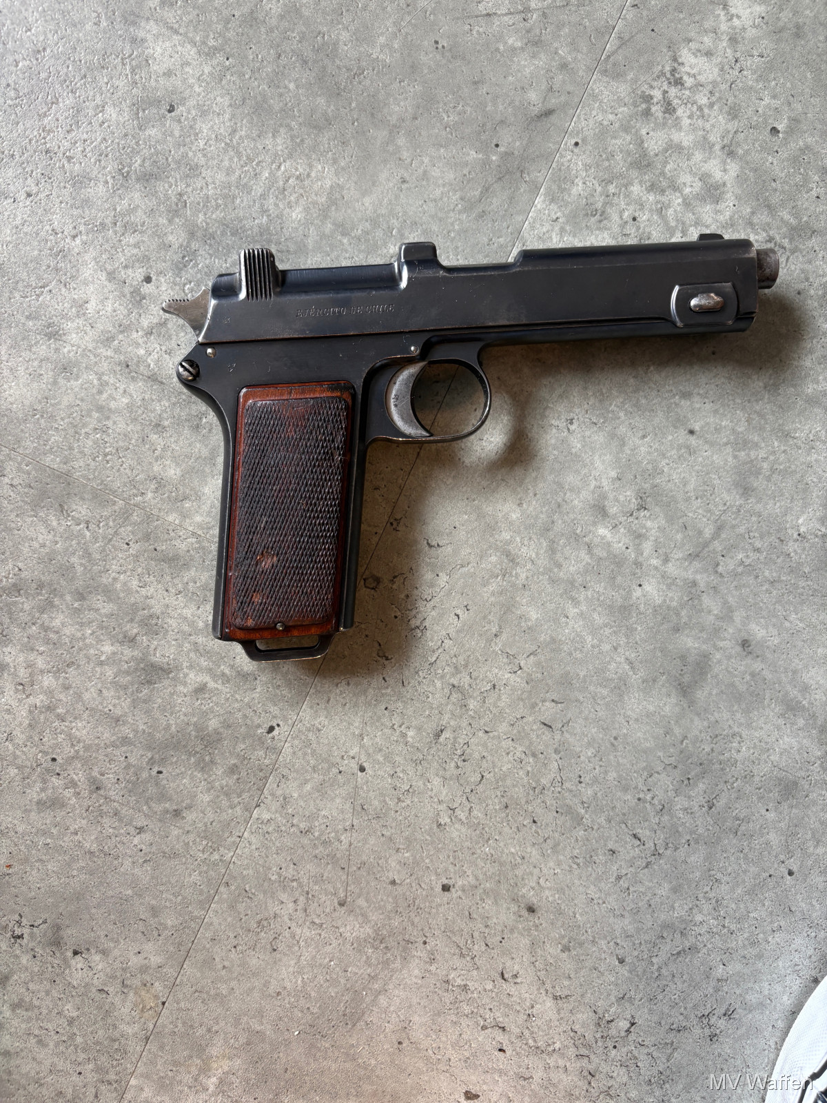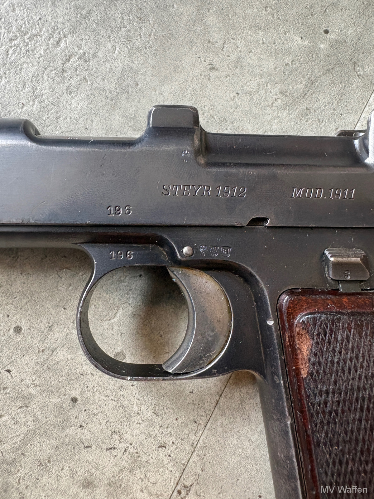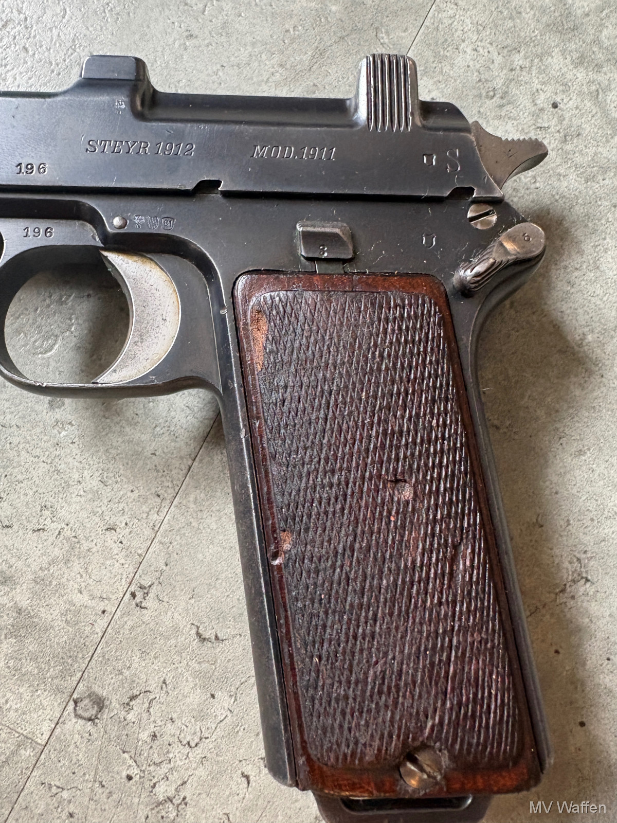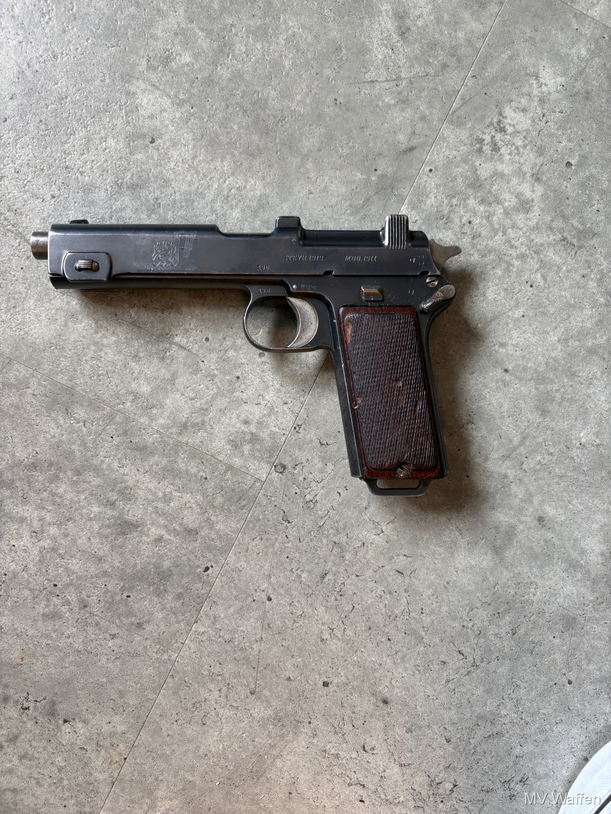 Steyr 1911 Mod 1912 Chile in Kaliber 9mm Steyr. Gültiger Beschuss von 1981 schöner Zustand. Lauf gut. Schönes Sammlerstück. Zuschlagen bei der Gelegenheit. Direktversand an Europäische Händler möglich. Fragen Sie bitte nach den Versandkosten. Wie immer völlig unbearbeitet um Ihnen einen ehrlichen Eindruck des Zustandes zu ermöglichen.. Diese Sammelwaffe kann natürlich gerne, nach vorheriger Absprache in Wolfratshausen besichtigt werden