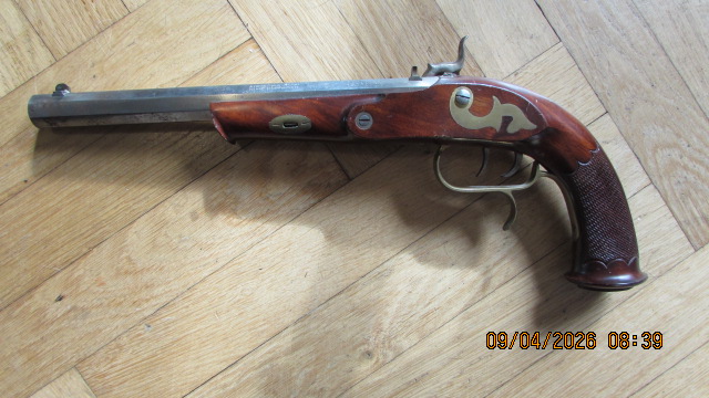 Match Vorderladerpistole, Perkussionssystem mit dt. Stecher; Funktion nicht überprüft.