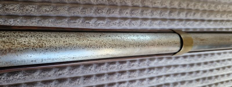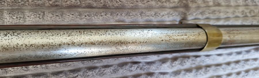 Langer, nach kurzem Achtkant in rund übergender Lauf. Cal. 18,6 mm glatt. Bajonettwarze. Am Ansatz seitlich Marke. Laufoberkante No 44.