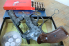 Verkaufe aus Nachlaß einen RÖhm Signal-Revolver 79G mit 5- Schuß Trommel im cal.9mm.Der Revolver wurde im Ultraschallbad gereinigt,deshalb hat die Brünierung darunter gelitten und sieht scheckig aus.Die Fkt.ist sehr gut.Mit dabei ist die Orig.Verpackung,25 Schuß Knallpatronen v.RWS,die Bedienungsanleitung die Reinigungsbürste und 5 Signalsterne.Zum Mitführen des Revolvers,z.B.an Silvester, benötigt man in DE einen kl.Waffenschein.Angaben nach bestem Wissen.Achtung Privatverkauf,daher keine Garantie und keine Rücknahme.