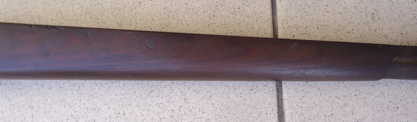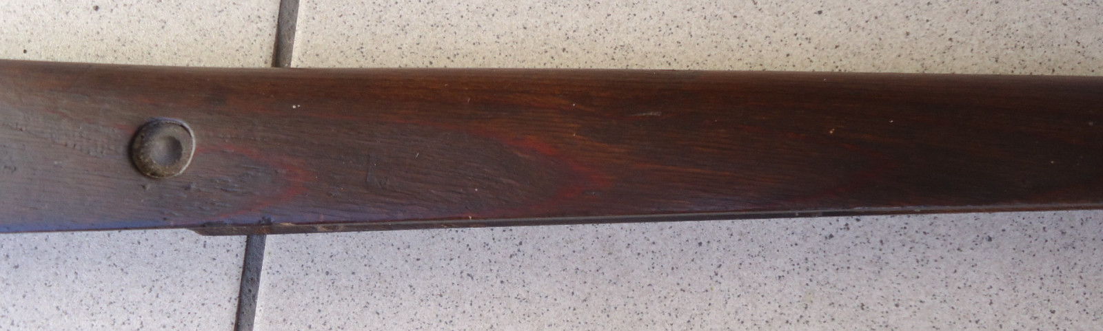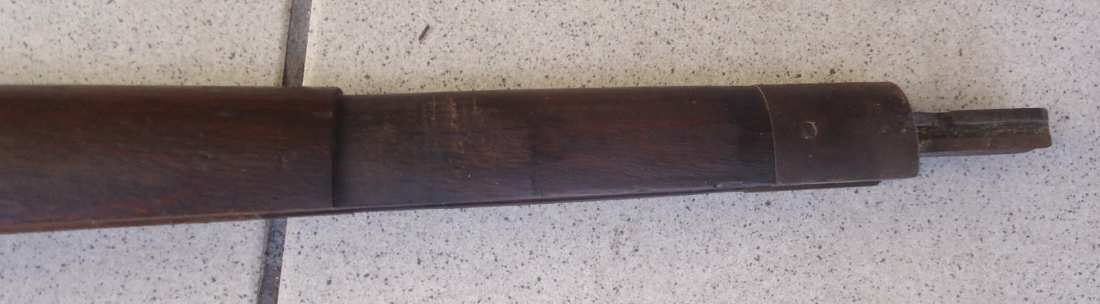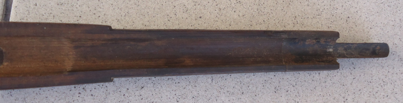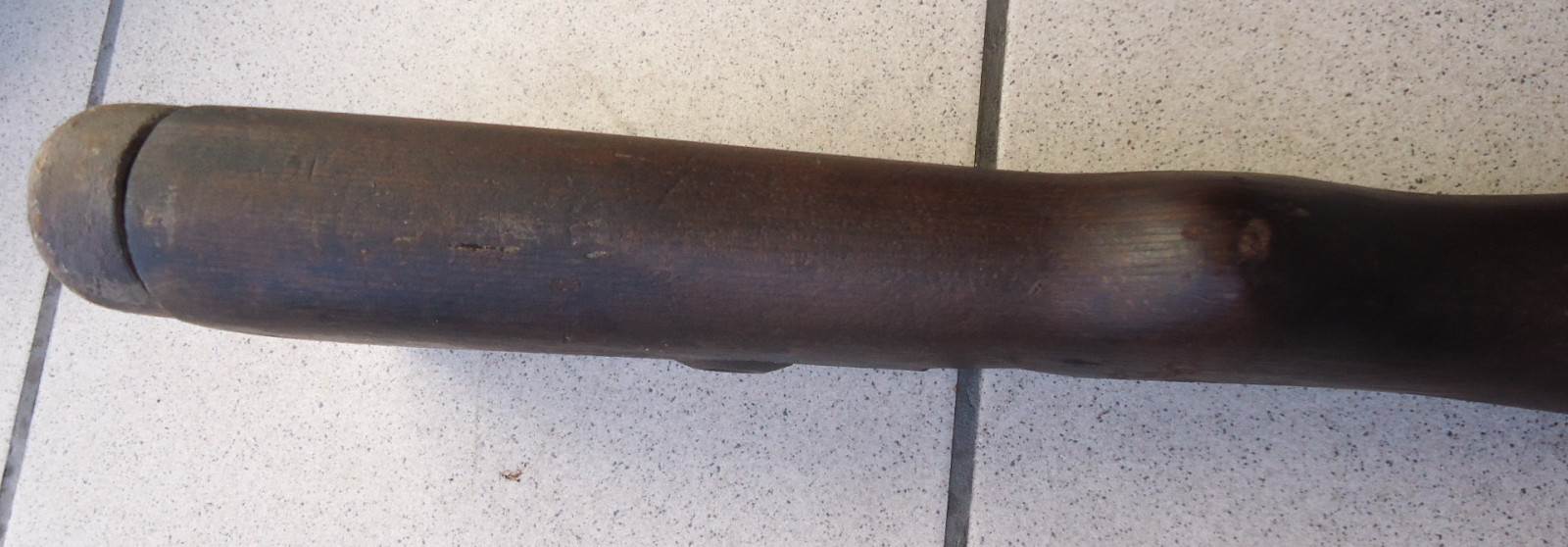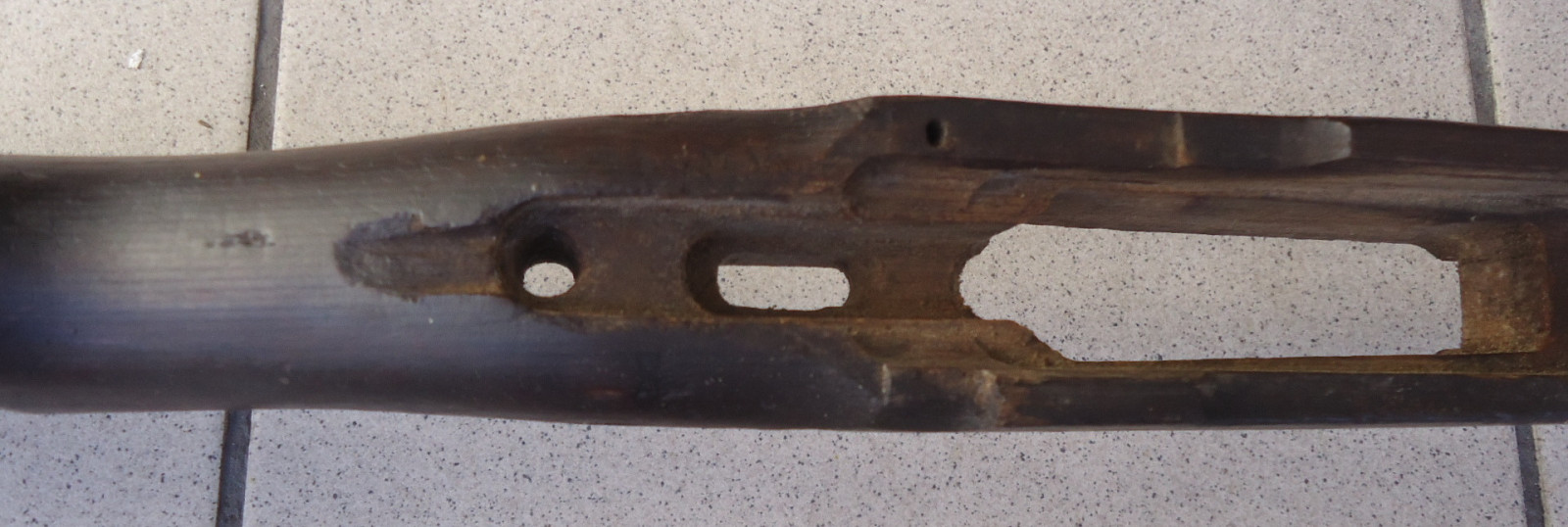 Leider fehlen einige Teile, der Schaft selber ist nicht gebrochen und hat auch keine Risse. Länge 101 cm.
