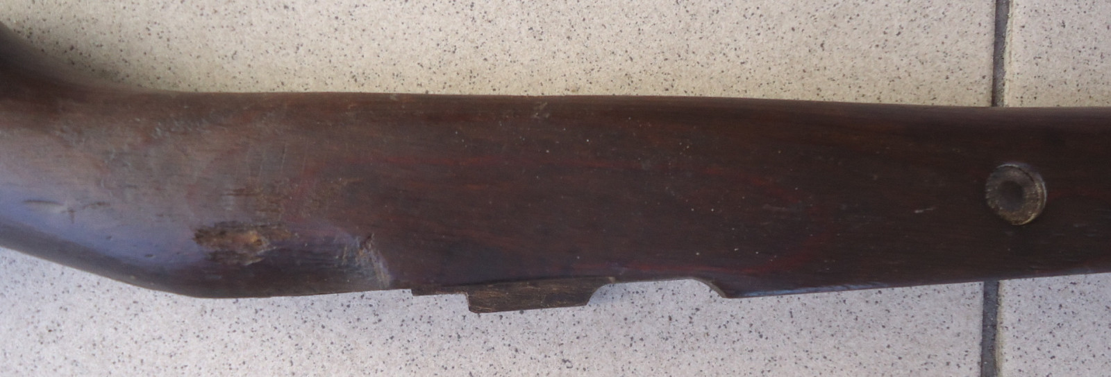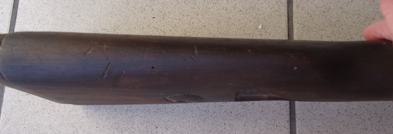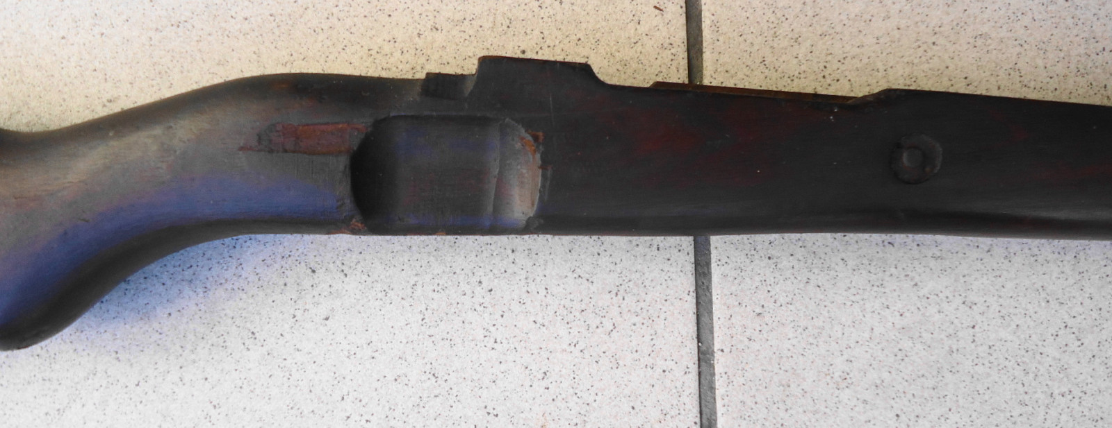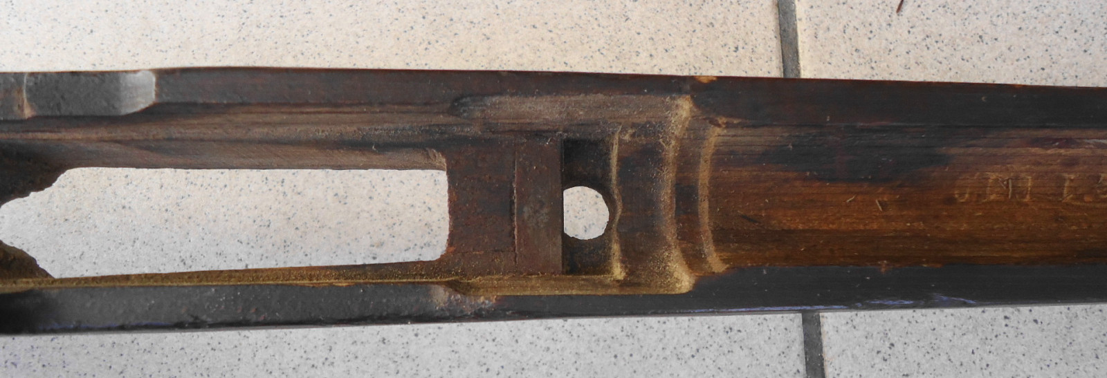 Leider fehlen einige Teile, der Schaft selber ist nicht gebrochen und hat auch keine Risse. Länge 101 cm.