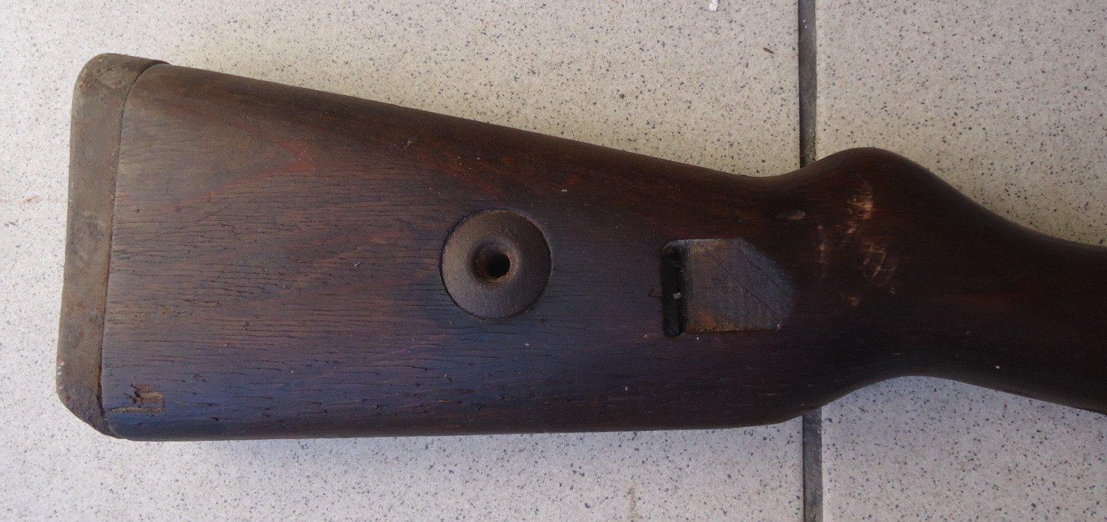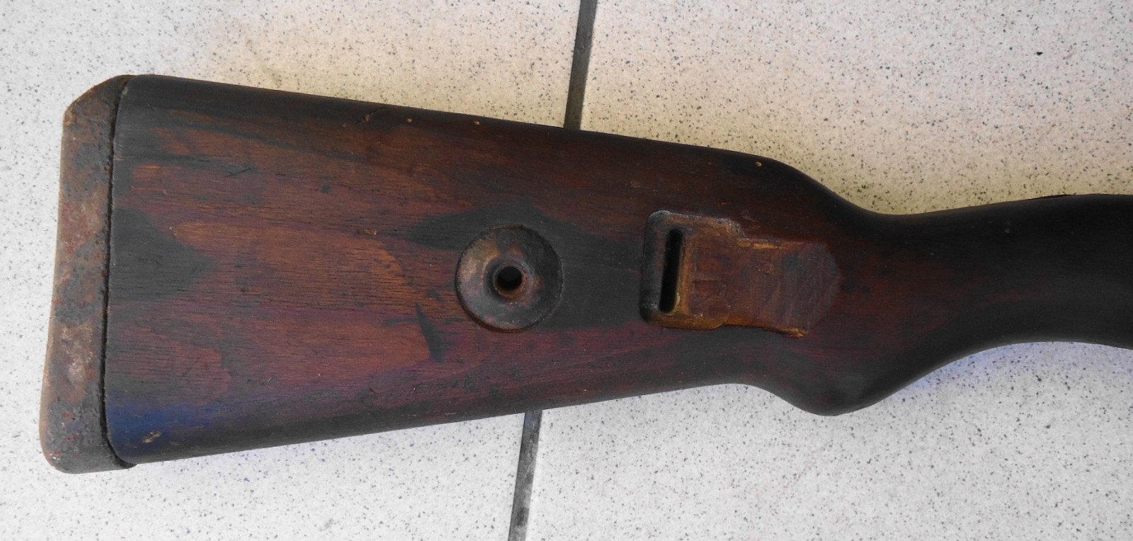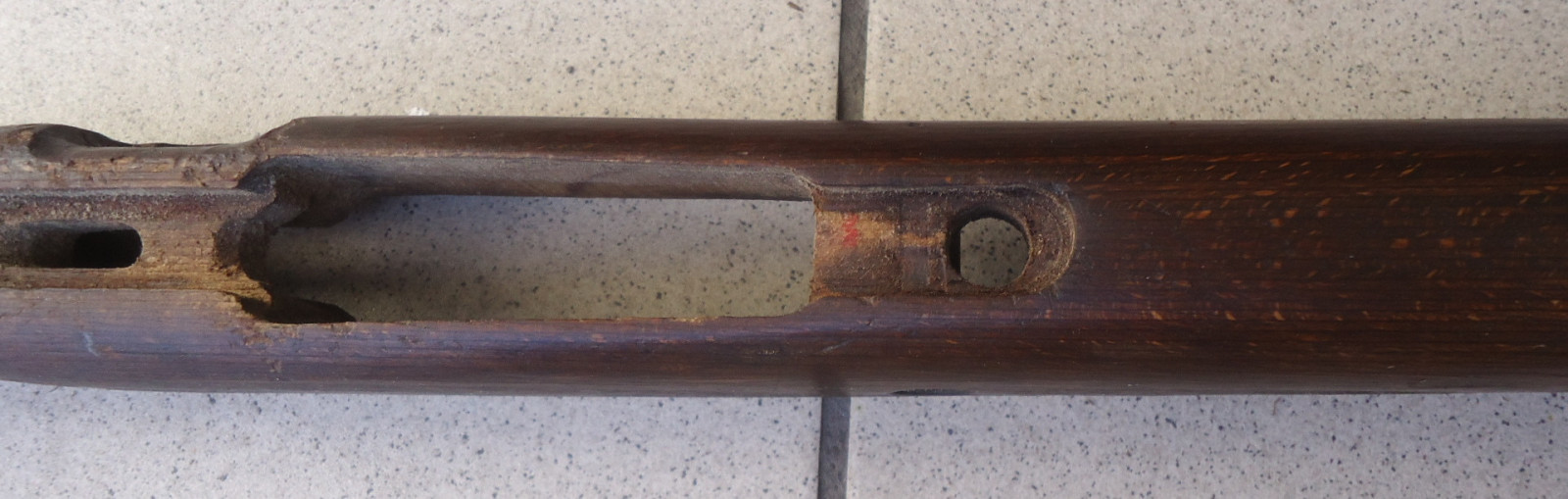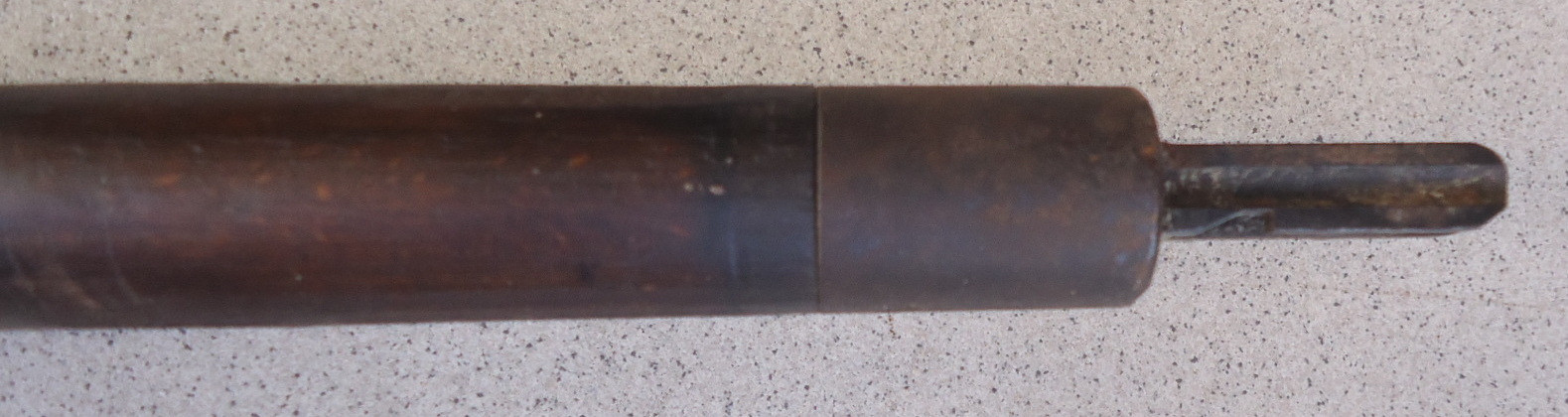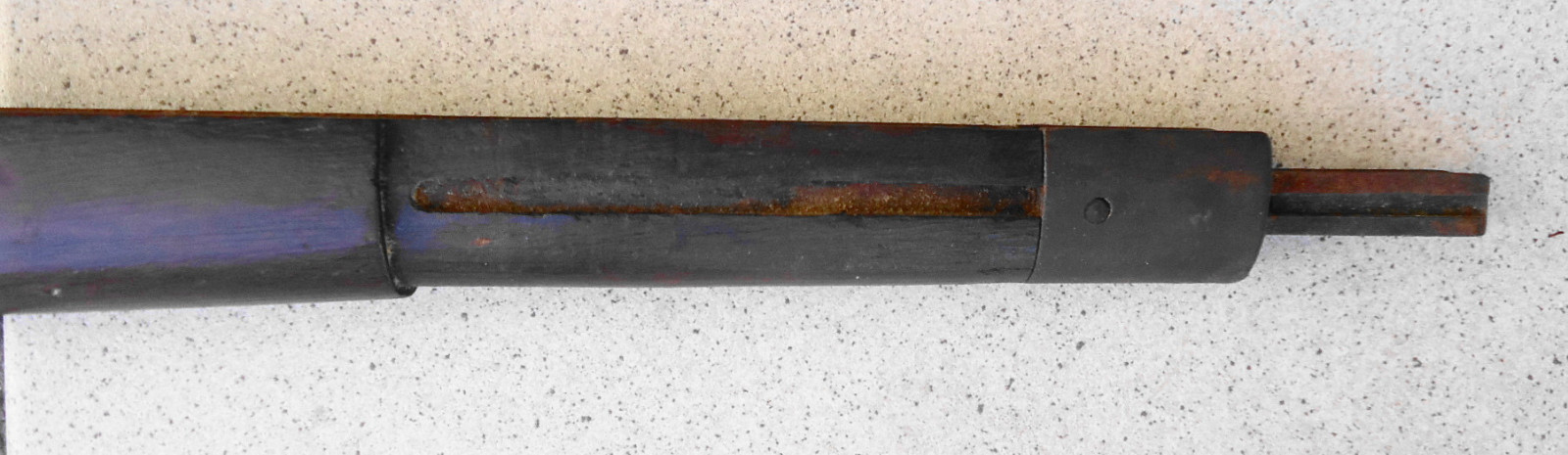 Leider fehlen einige Teile, der Schaft selber ist nicht gebrochen und hat auch keine Risse. Länge 101 cm.