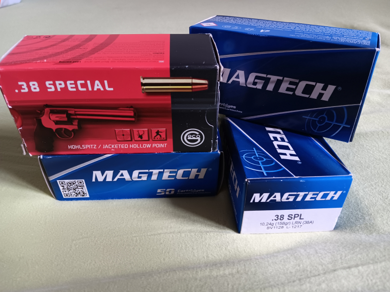 150 Patronen Magtech mit 10,24 g Bleirundkopfgeschoss und 50 Patronen Geco mit Hohlspitzgeschoss im Kaliber .38 Spezial.