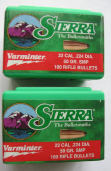 Verkaufe meine original verpackten Sierra Geschosse .224, 50 GR. SMP. 200 Stück, siehe Foto. Bei Fragen bitte melden. Privatverkauf wie üblich ohne Garantie, Rücknahme ect.