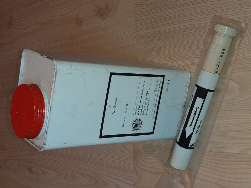 Handsignal Weißfeuer + Dose, Leerhülse, VEB Silberhütte, inert, Handsignal