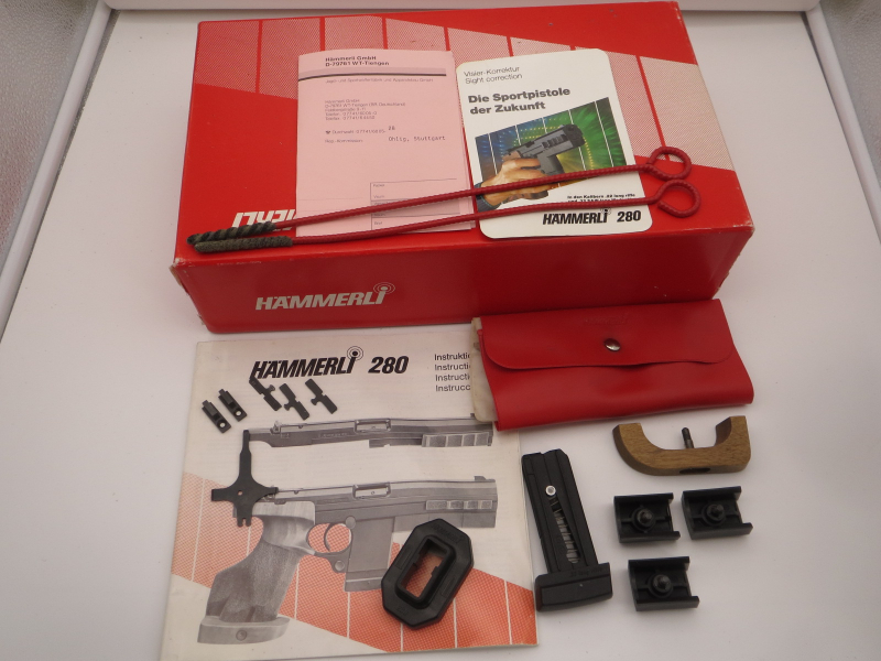 Verkaufe Hämmerli Sportpistolen Zubehör. So selten zu finden komplett mit Werkzeug. Gebrauchsspuren vorhanden. Der Schaumstoff im Karton zerfällt und sollte erneuert werden. Bilder zählen zur Beschreibung keine Gewährleistung oder Rücknahme, Tausch da von Privat verkauft. Mehr Bilder auf Anfrage. Bitte stellen Sie Fragen vor Ablauf der Auktion. Versandgebühren gelten für den versicherten Versand für Deutschland ohne Inseln.