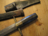 Mir unbekannter uralter Säbel mit Lederscheide und Koppelstück. Länge gesammt 75cm mit Holzgriff und Messingring und Messing Parierstange (etwas locker) Schweres Stück mit unbeschliffener Klinge. 2 Messingteile fehlen wohl: zum Einen das obere Griffendstück und zum Anderen das Scheidenendstück. Viel Spaß beim Bieten. Zustand siehe Fotos.