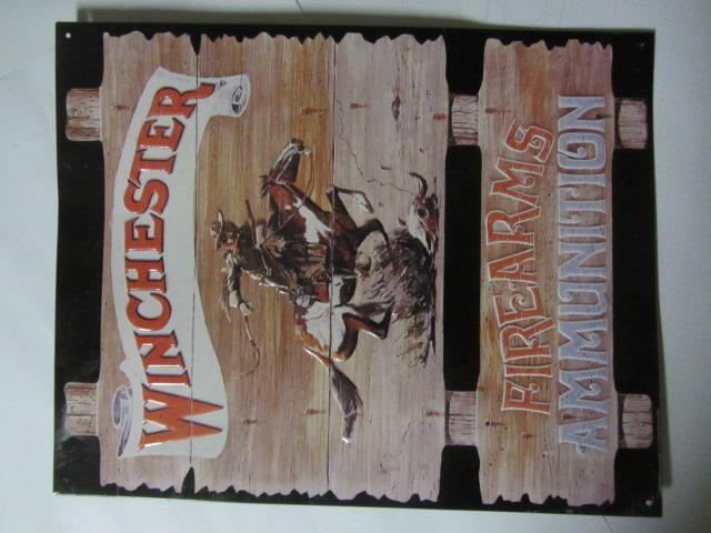 Altes Blechschild mit Winchester-Werbung, USA, Größe 41 x 32 cm, geprägt.