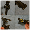 Zum Verkauf steht eine Rarität/Sammlerstück, einer der ganz wenigen Schreckschuss Kipplauf Revolver aus guter alter deutscher Fertigung der Traditionsfirma Mayer & Söhne: Mod. "G" , Kaliber .380/ 9mm RK . Sehr frühe PTB 2-71 , Beschuss in Köln 1972 und somit 54 Jahre alt. Der Revolver ist voll restauriert. Er wurde vom Profi mit einer Einbrennlackierung überzogen und dann mit Klarlack Glanz lackiert. Obwohl er gelegentlich geschossen wurde gibt es an der Trommel so gut wie keine Spuren von der Trommelsperre. Die Oberfläche ist wirklich sehr hart und glatt. Der Revolver ist