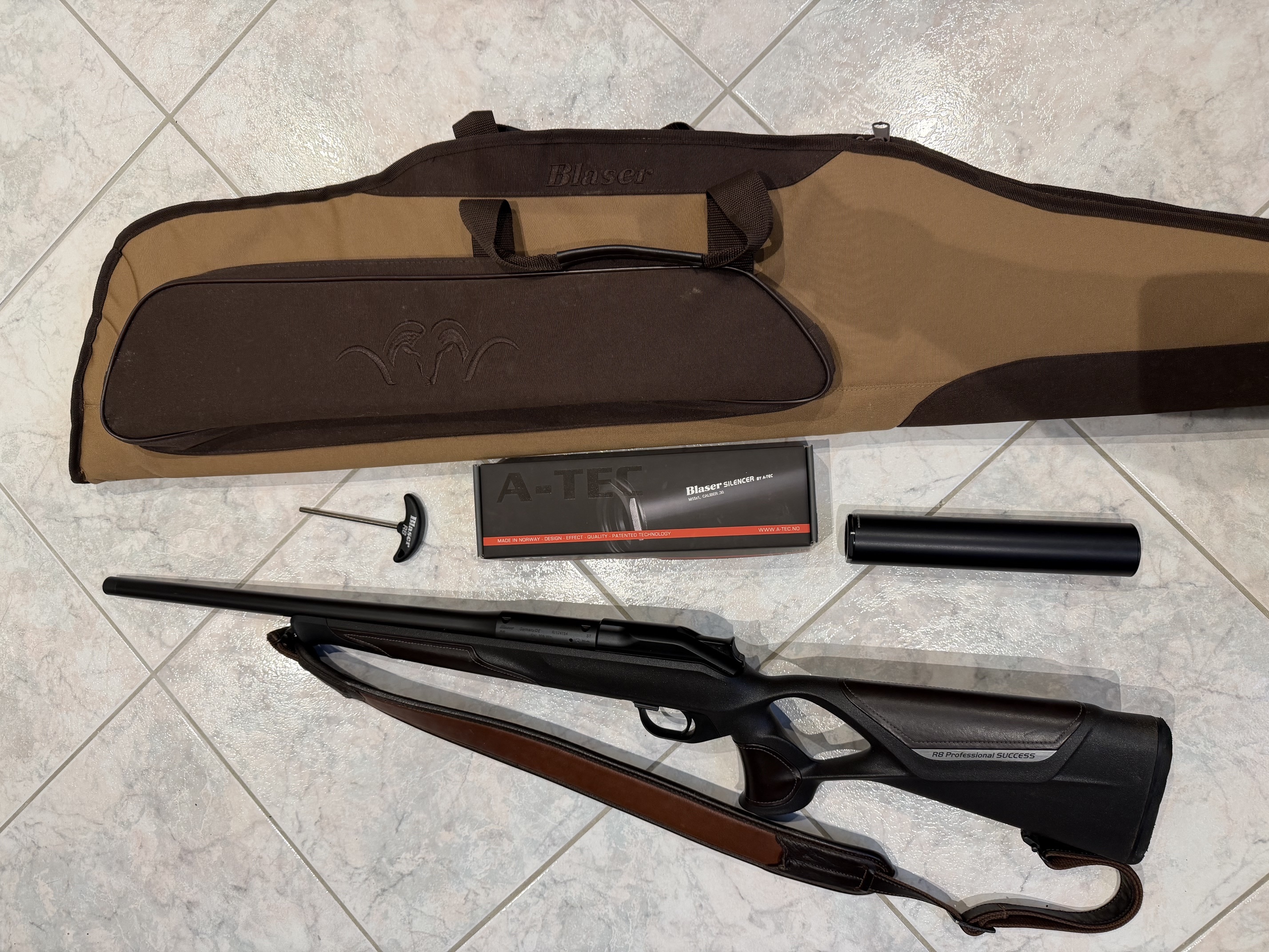 BLASER Repetierbüchse R8 PROFESSIONAL SUCCESS LEDER KAL. .308 WIN /Semi Weight Lauf M17x1 ohne Visierung, LL 52cm / ATZL Abzug Schalldämpfer Atec Kal.30