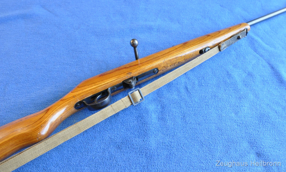 Waffe in einem sehr schönen Zustand, lässt sich spannen und abschlagen. Dieser Typ wurde auch von der GST und der FDJ der DDR für die Vormilitärische Ausbildung benutzt.