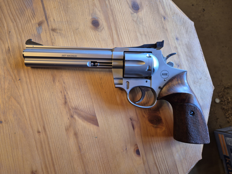 Es handelt sich hier um einen Korth-Revolver. Über die Waffenfabrik Korth braucht bei Kennern nicht viel erzählt zu werden, deshalb nur kurz: Korth-Revolver sind für Ihre extrem geringen Toleranzen, Handarbeit und legendäre Langlebigkeit bekannt. Sie gelten als der Rolls-Royce unter den Revolvern. Die Herkunft ist auch auf der Seite eingraviert: Ratzeburg, West-Germany, was das Baujahr auch eingrenzt.