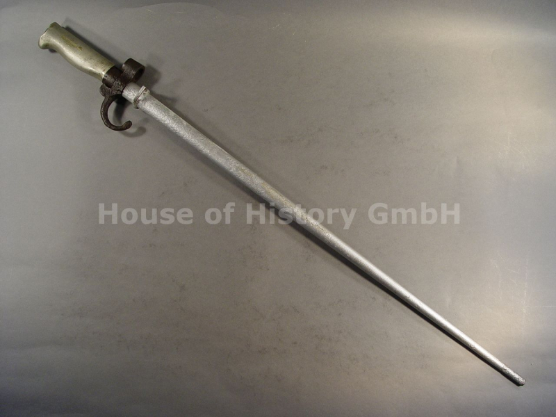 Französisches Beute / Dillenbajonett mit Scheide ( mit Silberfarbe angestrichen), Klinge mit Hersteller, teils rostig siehe Fotos, günstig angesetzt