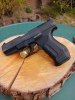 Leichte Schlieren vom Holster sind zu sehen.