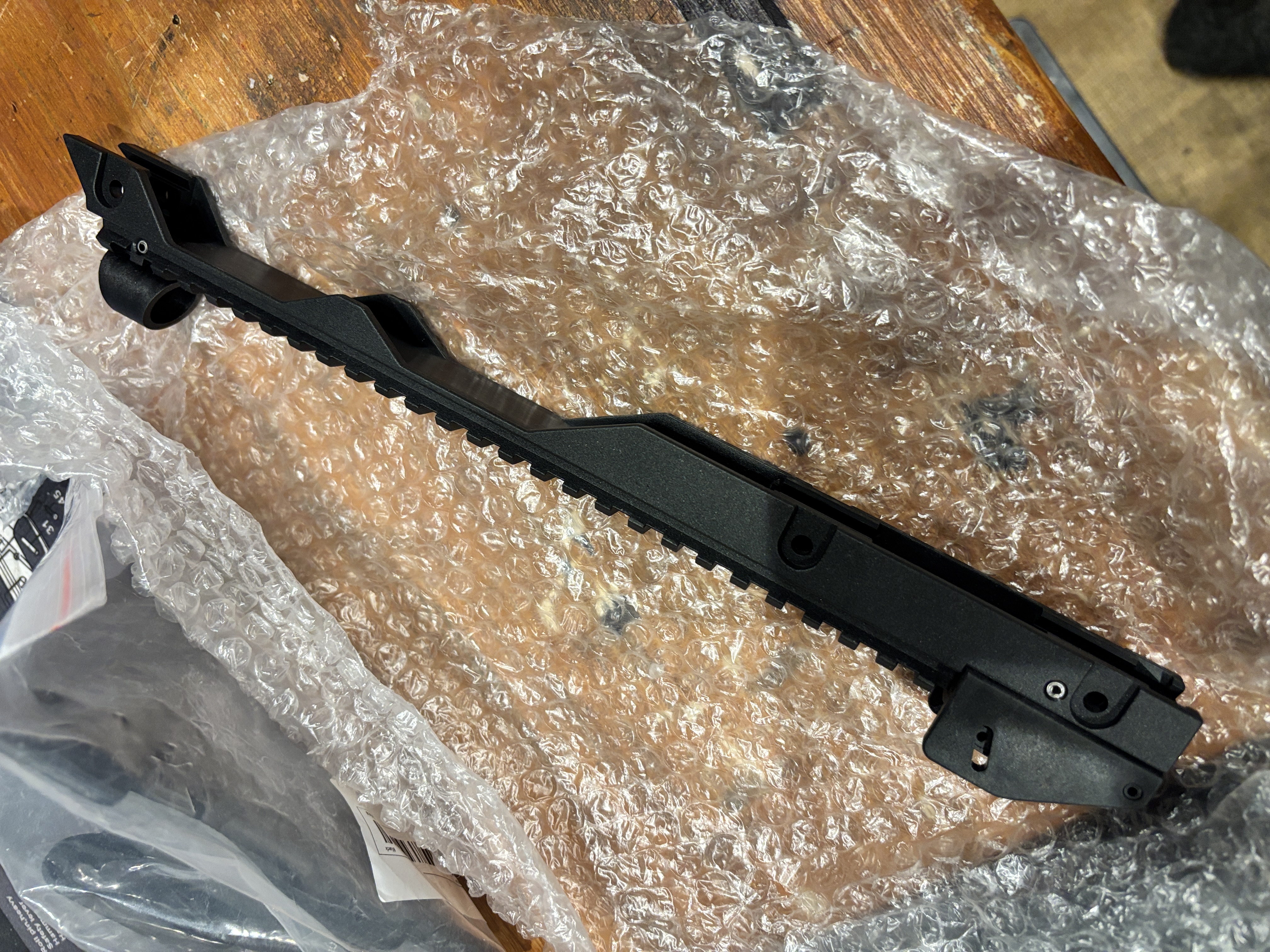 Ausführung in Schwarz mit durchgehender Picatinny-Schiene zur Montage von Optiken, Rotpunktvisieren oder weiterem passenden Zubehör.