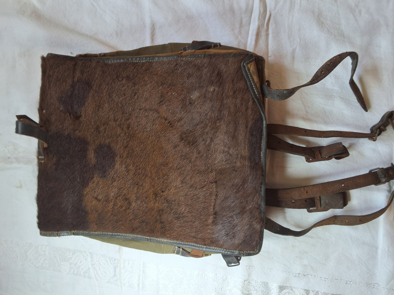 IBiete gut erhaltenen Tornister der Wehrmacht von 1943. Fell in Ordnung. Komplette Beriemung vorhanden und als Extra alle drei orginalen Riemen zum befestigen der Decke auch vorhanden. Rest siehe gute Bilder.