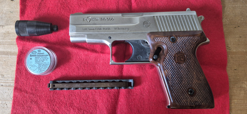 zum Verkauf steht hier eine wunderschöne und aufgrund der Farbe, seltene Schreckschusswaffe Röhm RG 300 im Kaliber 6mm Flob. Die Waffe ist gebraucht, aber in einem sehr guten Zustand. Mit im Paket sind ein Abschussbecher, die Anleitung, Magazin und die originale Verpackung. Ich lege auch noch bisschen Munition bei, diese ist jedoch schon etwas älter, war aber immer ordentlich gelagert.