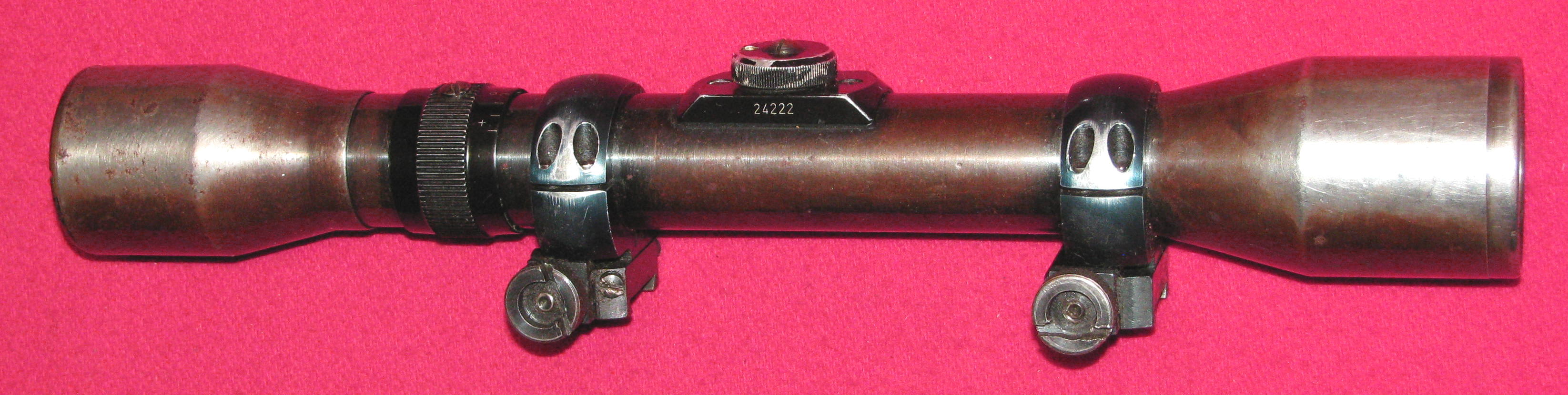 Zum Verkauf kommt ein ZF / Zielfernrohr / Stahlglas, ein älteres Schmidt & Bender, ein SORNET 4 x 81 mit dem Absehen 1