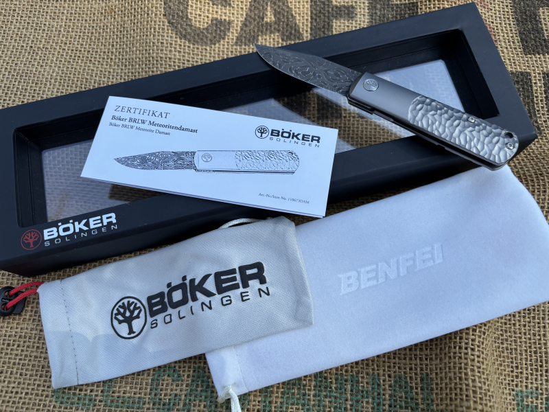 osmic, from outer space; straight into New EDC! Das Böker BRLW Meteoritendamast ist alles, außer irdisch. Schwereloses Design, pulsierende Dynamik, grenzenlose Faszination diese exklusive Sonderversion gibt Antworten, ohne Fragen aufzuwerfen. Die Gesetzmäßigkeiten der EDC-Welt neu definiert, mit traditionellen Werten Oder anders gesagt: BRLW! Unbeeindruckt von über 150 Jahren Geschichte Böker Barlow führt das stilvolle Taschenmesser das Vermächtnis der beliebten Modellreihe mit modernem Zeitgeist in die Zukunft. Nur die besten Materialien, feinste Handwerkskunst und 1869% Leidenschaft fließen in das BRLW ein. Stilprägend ist die von Chad Nichols handgeschmiedete, kugelgelagerte Clippoint-Klinge aus nicht rostfreiem Meteoritendamast, einem Verbund aus echtem Eisenmeteorit und Kohlenstoffstahl, der mit seinem atemberaubenden Muster "Mosaic Crossed Damascus Pattern" in neue Sphären vorrückt. Hier knüpft der optisch abgesetzte und präzisionsgefräste Titangriff nahtlos an, der im vorderen Bereich die überlange Backe der klassischen Barlow Modelle andeutet und im hinteren Griffbereich die unregelmäßige Beschaffenheit eines Meteoriten mit seiner charakteristischen Textur liebevoll aufgreift und dabei gleichzeitig eine angenehme Haptik vermittelt. Ein diskret eingearbeiteter Framelock mit gehärtetem Lockbar-Insert übernimmt die Verriegelung der Klinge. Zum eleganten Erscheinungsbild tragen der dezente Flipper, der im geöffneten Zustand vollständig verschwindet, sowie der flache, aus dem Vollen gefräste Titan Clip (Tip-Up/r) bei, während der Böker Baum die Klingenachsschraube der Vorderseite dekorativ verziert. Für zusätzliche Tragemöglichkeiten sorgt die Fangriemenöse am Griffende. Die Auslieferung des Böker BRLW Meteoritendamast erfolgt in einem hochwertigen Rahmen-Etui. Exquisit, extraterrestrisch, ein Sammlermesser der Extraklasse! Handgefertigt in der Böker Manufaktur Solingen. Mit Echtheitszertifikat und individueller Seriennummer.