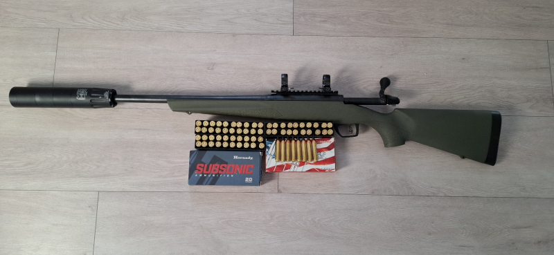 Die Munition (40 Schuss Hornady Subsonic sowie 28 Schuss Hornady Whiteail) sind explizit nicht Teil der Auktion, können aber sehr günstig bei Abholung der Waffe dazu erworben werden. Der Versand der Munition ist leider nicht möglich.