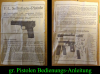 absolut selten zu finden denn hier ergattern sie eine originale alte Pistolen Anleitung. Diese ist im großen und ganzen noch gut erhalten; gerade mal einige Gebrauchsspuren (Faltspuren, leichte Randschäden, leicht zerknittert) sowie einige leichte Verschmutzungen; und dies war es auch schon; es fehlt hier auch nichts - also komplette Bedienungsanleitung zu einer Pistole;