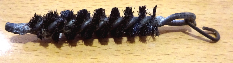Also keine Bürstenhaare die verlorgen gingen, nichts verzogen und nichts verbogen; das Metall ebenfalls nur mit leichten Oxidationen und selbstverständlich ist auch noch der kleine Haken erhalten geblieben um das gute Stück bei der Putzkette aus dem RG34 einhängen zu können.