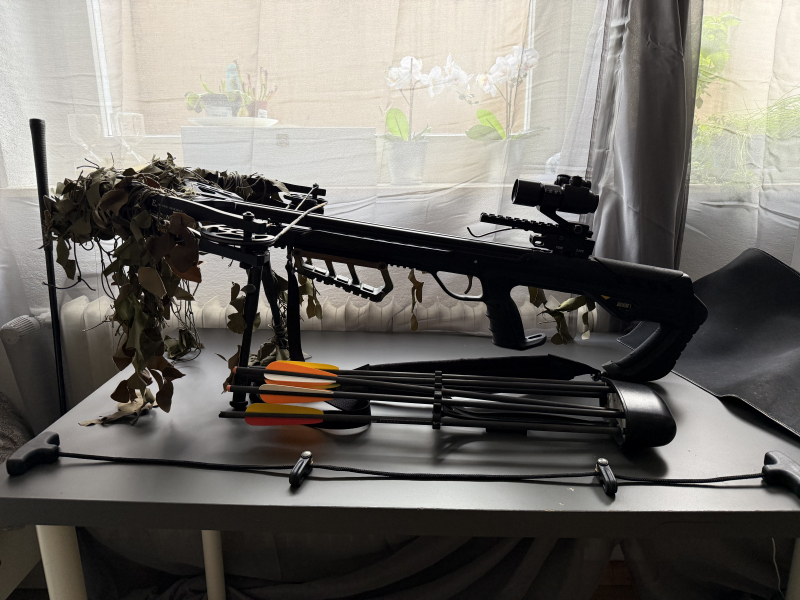 Verkaufe meine Armbrust Guillotine ek archery research mit 4 Pfeilen, sling und Köcher.