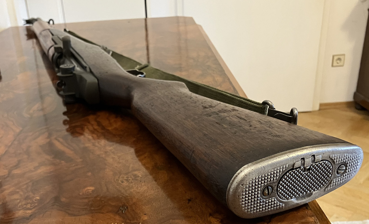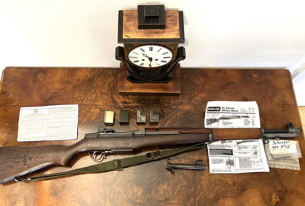 Versteigert wird die abgebildete Selbstladebüchse M1 Garand in .30-06 Springfield von Harrington & Richardson. Das abgebildete Zubehör, wie Gewehrriemen, 5- und 8- Schuss-Ladeclips sind ebenfalls Bestandteil der Auktion. Die Waffe verfügt über einen Schuster Gasplug zum Verschießen moderner .30-06 Munition. Der originale Gasplug ist ebenfalls enthalten : - )