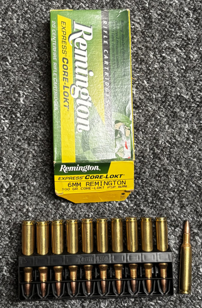 Verkaufe 14 Patronen im Kaliber 6 mm Remington geladen mit einem 100 grain Core-Lockt PSP Geschoss.