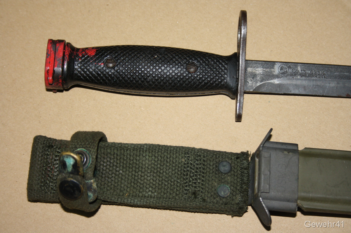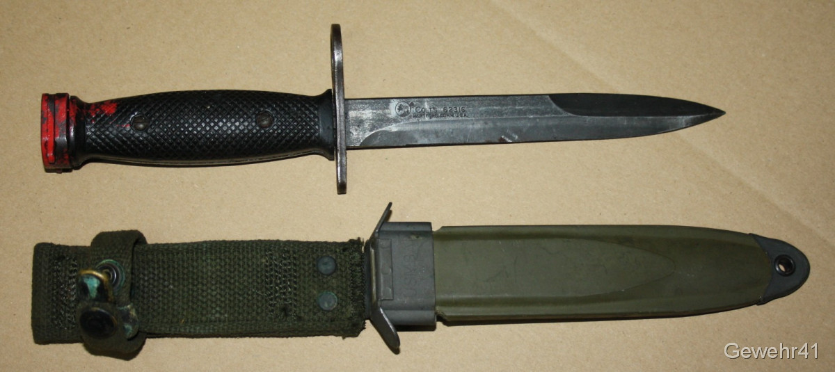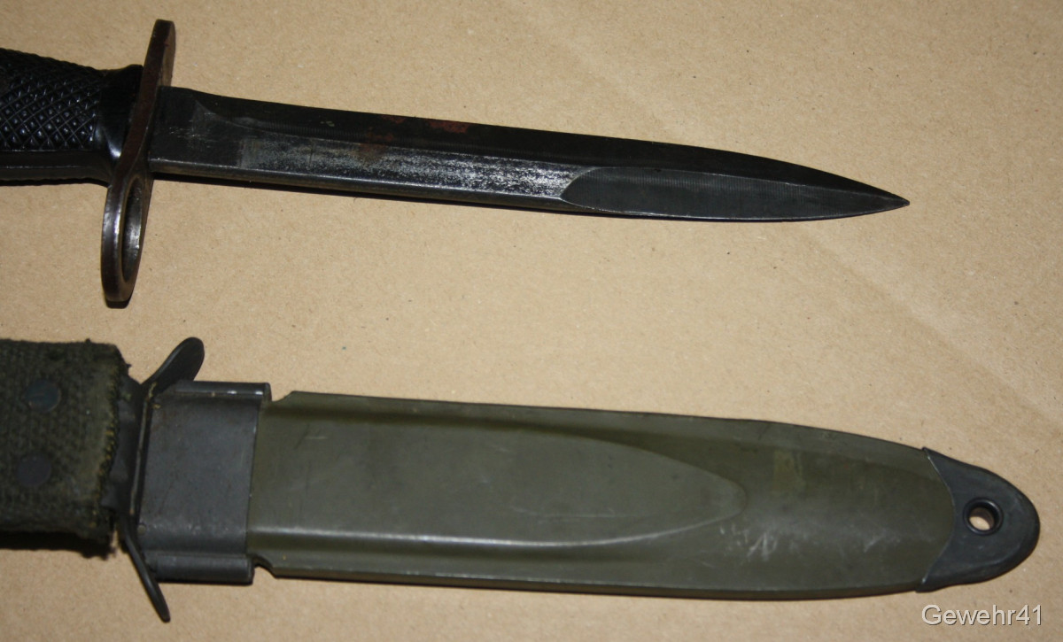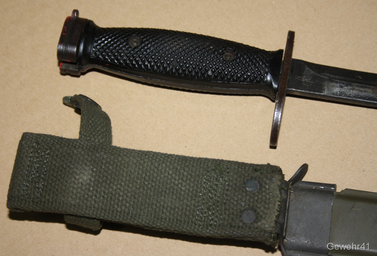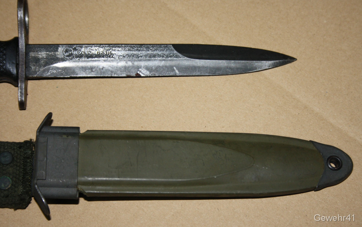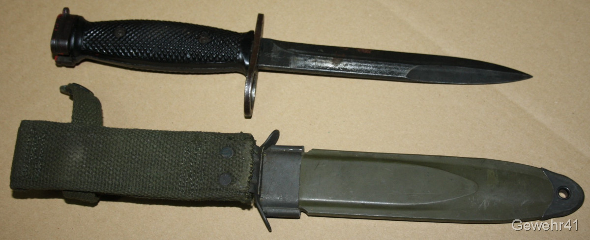 Sie bieten auf diese originale "Colt" Bajonett M7 mit dazugehöriger Scheide M8A1 für M16 Sturmgewehre. Guter Zustand.