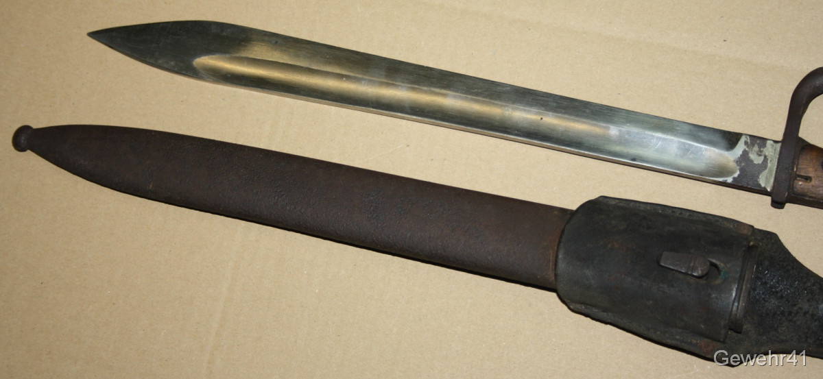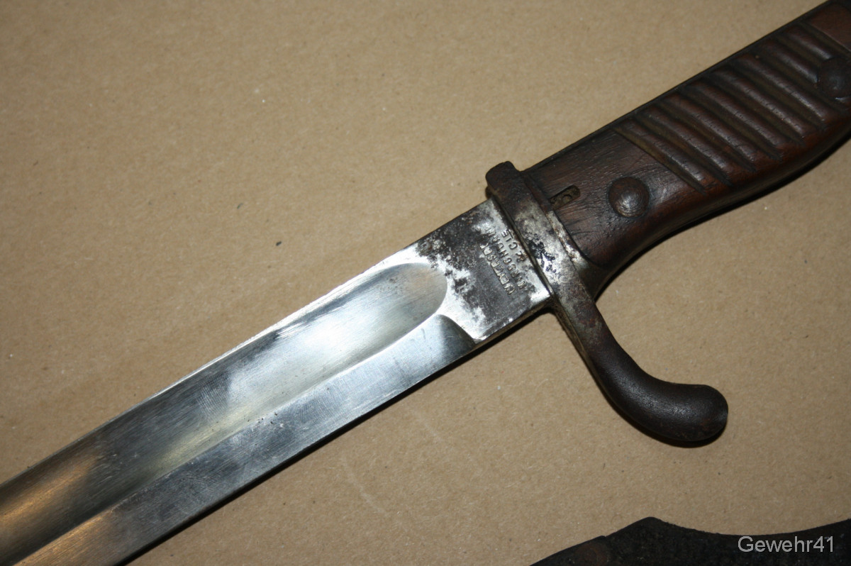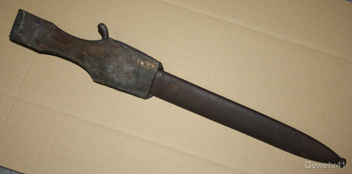 Sie bieten auf diese absolut unberührte deutsche Bajonett 98/05 mit dazugehörigem Lederkoppelschuh. Schöner Zustand, trotz des Alters.