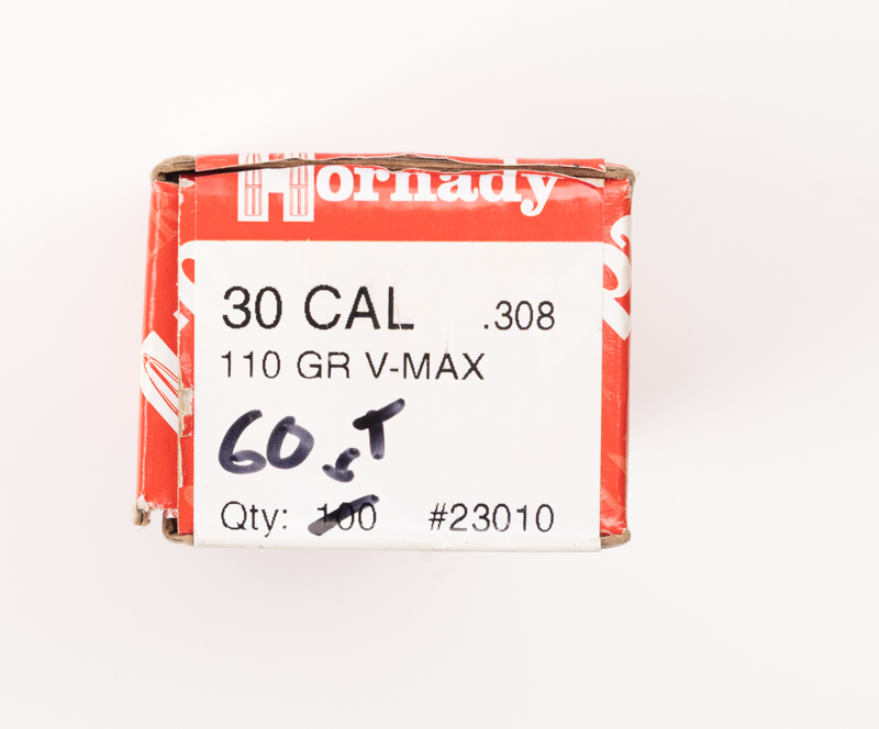60x Hornady 30 Cal .308 110 gr V-MAX Geschosse #23010 Angebrochene Box mit 60 Stück Hornady V-MAX Geschossen, 110 Grain, Kaliber .30.