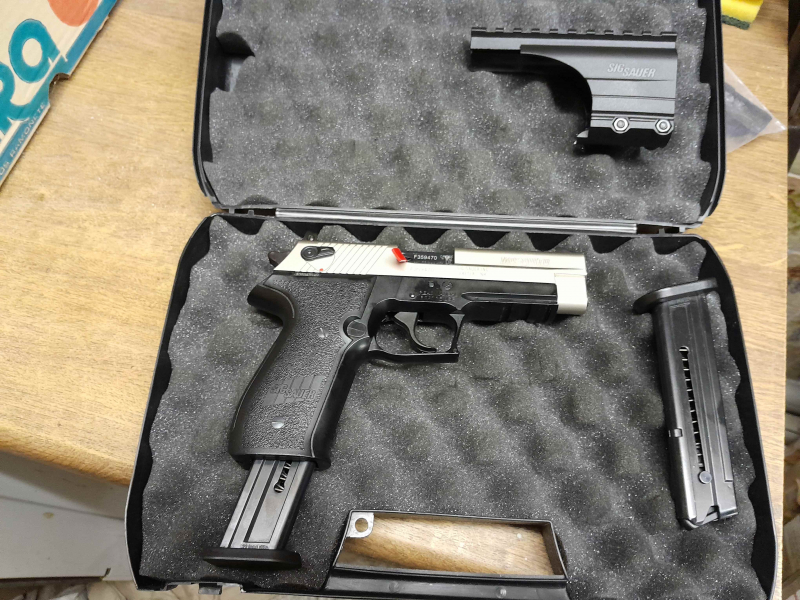 es handelt sich hier um eine sehr schöne, wenig genutzte Sig Sauer Mosquito im Kaliber .22lr (siehe Bilder). Die Waffe befindet sich im originalen Koffer mit zwei Magazinen und hat außerdem eine Montage (Picantinny-Schiene)zur Befestigung von weiteren Anbauteilen (siehe Bilder). Eine sehr führige Waffe für vielfältige Einsatzbereiche.