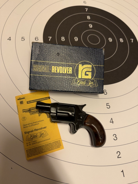 Zum Verkauf kommt ein Signal Revolver von Röhm, Modell little Joe, PTB Nr. 549, Cal. 6 mm FLOB PL. Optischer Zustand siehe Bilder. Funktion ist gegeben. OVP mit Beschreibung, jedoch ohne Abschussbecher! Sollte diese sich wieder anfinden wird er dazugelegt. Hier jedoch aktuell ohne Abschussbecher!